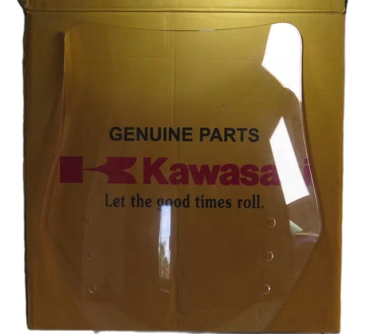 Proporciona proteção contra vento e detritos, melhorando o conforto do piloto e mantendo o acabamento original Kawasaki.